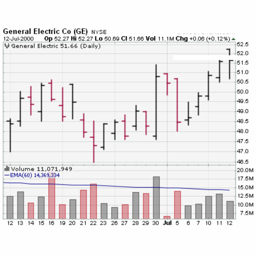 Short-term trading using this pre-holiday effect can provide excellent results. In the chart for General Electric (GE) below, we see that a buy near the open on June 30th would be accomplished at around $47.75. Selling at open on July 5th at $50.25 provided excellent returns.